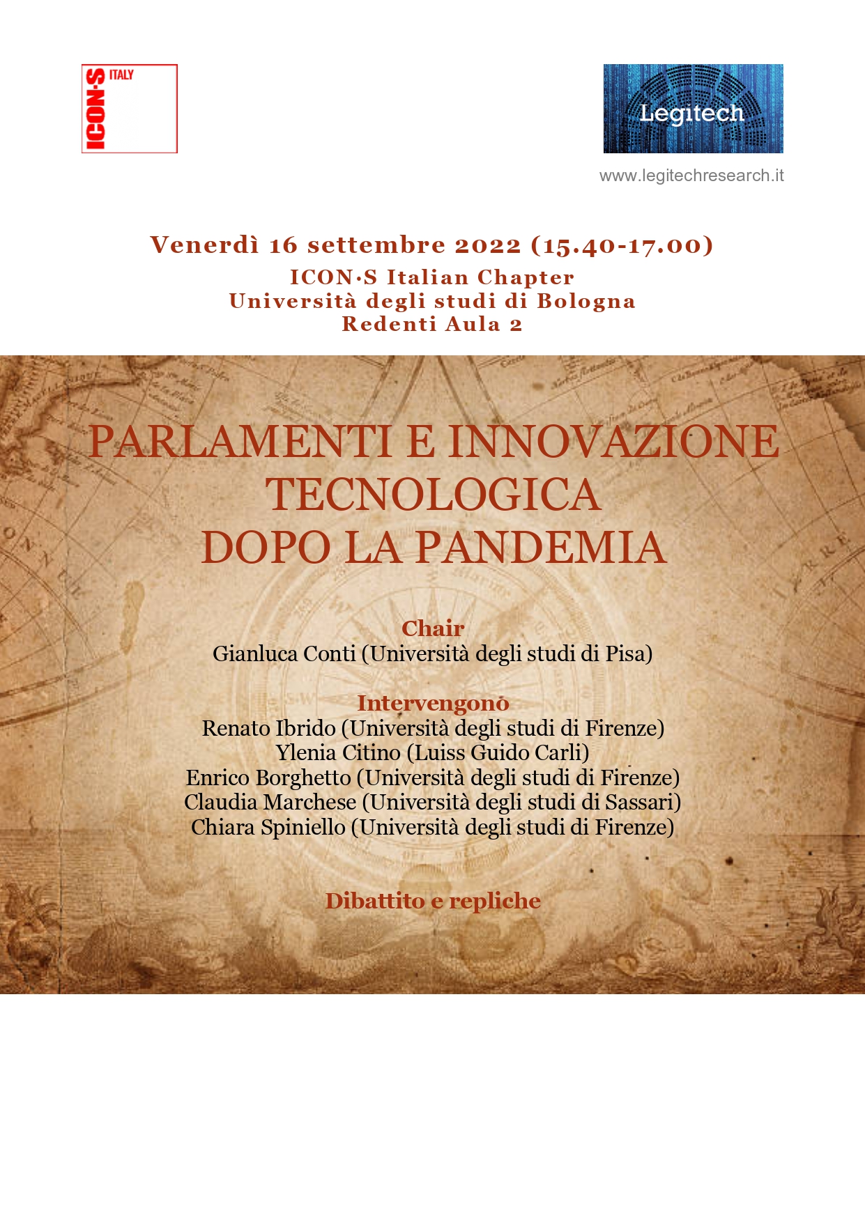 Legitech panel at Icon-s Italian Chapter: “Parlamenti e Innovazione tecnologica dopo la pandemia”, 16th September 2022, Università degli studi di Bologna